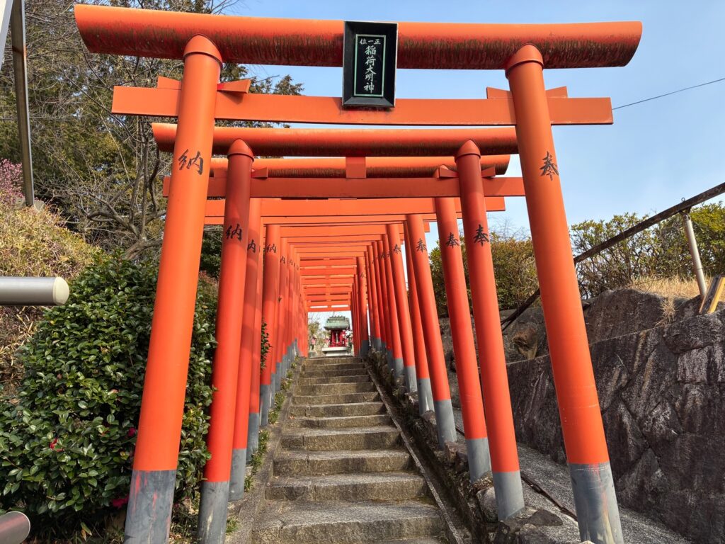 石段と鳥居が印象的なこの神社は、